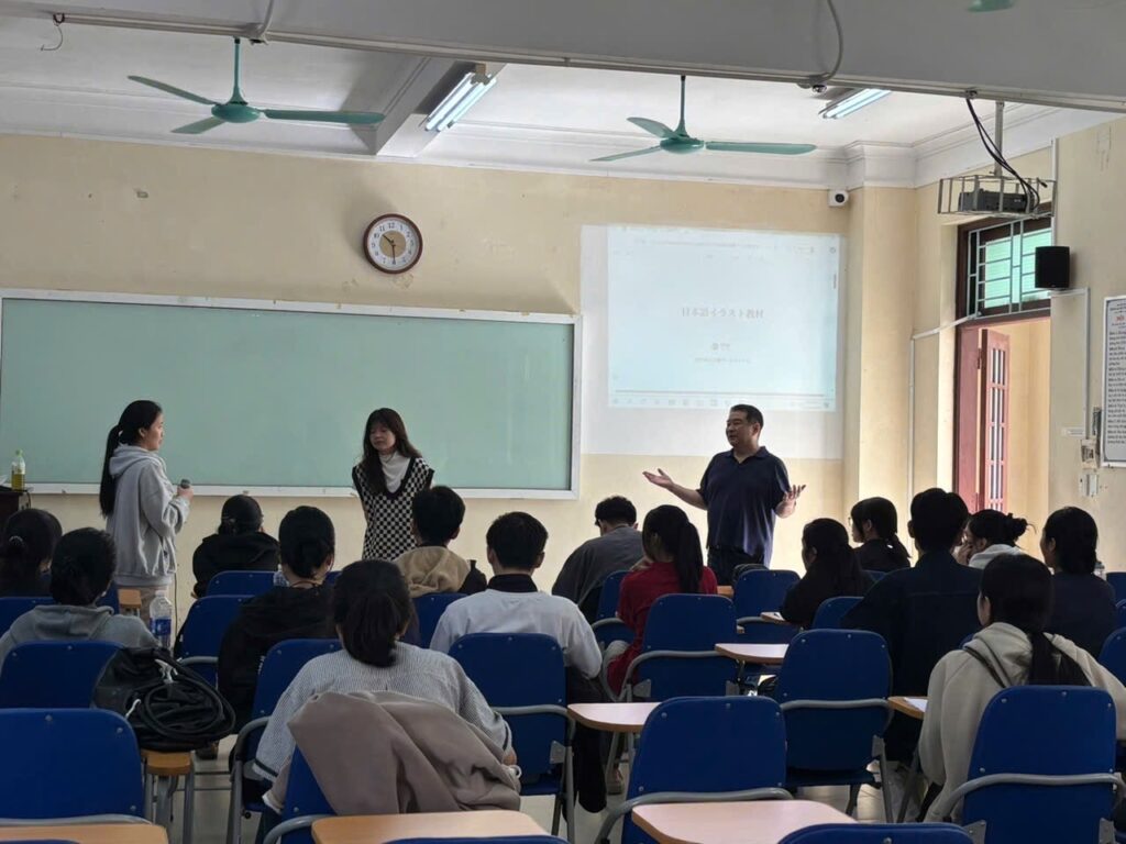 日本語特別授業実施報告書 1.実施概要フェ外国語大学で日本語教育の一環として、日本語特別授業を実施いたしました。本授業は、学生が日本語の運用能力を高めるとともに、実際の日本語ネイティブ話者との交流を通じて自然な会話力を養うことを目的として行われました。 2.授業内容本特別授業では、越谷勝治講師による日本語ネイティブとのディスカッション形式の授業を実施しました。授業の中心テーマは、「相互理解と表現力の向上」であり、学生が積極的に意見を述べ合い、日本語での思考と発信力を高める内容となりました。越谷講師は、日本語母語話者としての自然な表現方法や会話の間の取り方、発音のニュアンスなど、教科書では学びにくい実践的な指導を行いました。学生たちは講師との対話を通じて、より生きた日本語表現を体得する機会を得ました。 3. 実施日時・場所日時:2025年12月24日(水)午前10時00分~11時30分場所:フェ外国語大学 教室 4. 参加者学生数:約40名講師 :越谷勝治 5. 参加学生の反応参加した学生からは、「日本語を実際に使って会話できたことで自信がついた」「発音やイントネーションの指導が特に役立った」といった意見が多く寄せられました。また、講師との自由な質疑応答を通じて、日本語だけでなく日本文化への理解も深めることができたとの声がありました。 6. まとめ今回の日本語特別授業は、学生の日本語実践力を高める上で非常に有意義な機会となりました。今後も引き続きこのような交流型の授業を取り入れ、学生の言語能力および文化理解の向上を図ってまいります。